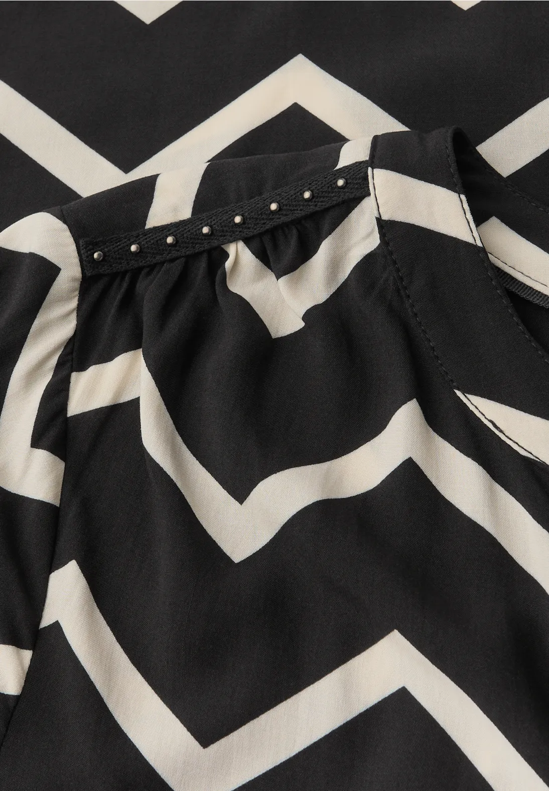 Cette tunique de Street One pour femmes marque des points avec son motif en zigzag et ses détails de rivets brillants. Le col fendu, la patte de boutonnage et la qualité douce de la viscose en font le compagnon idéal pour les tenues stylées de tous les jours.