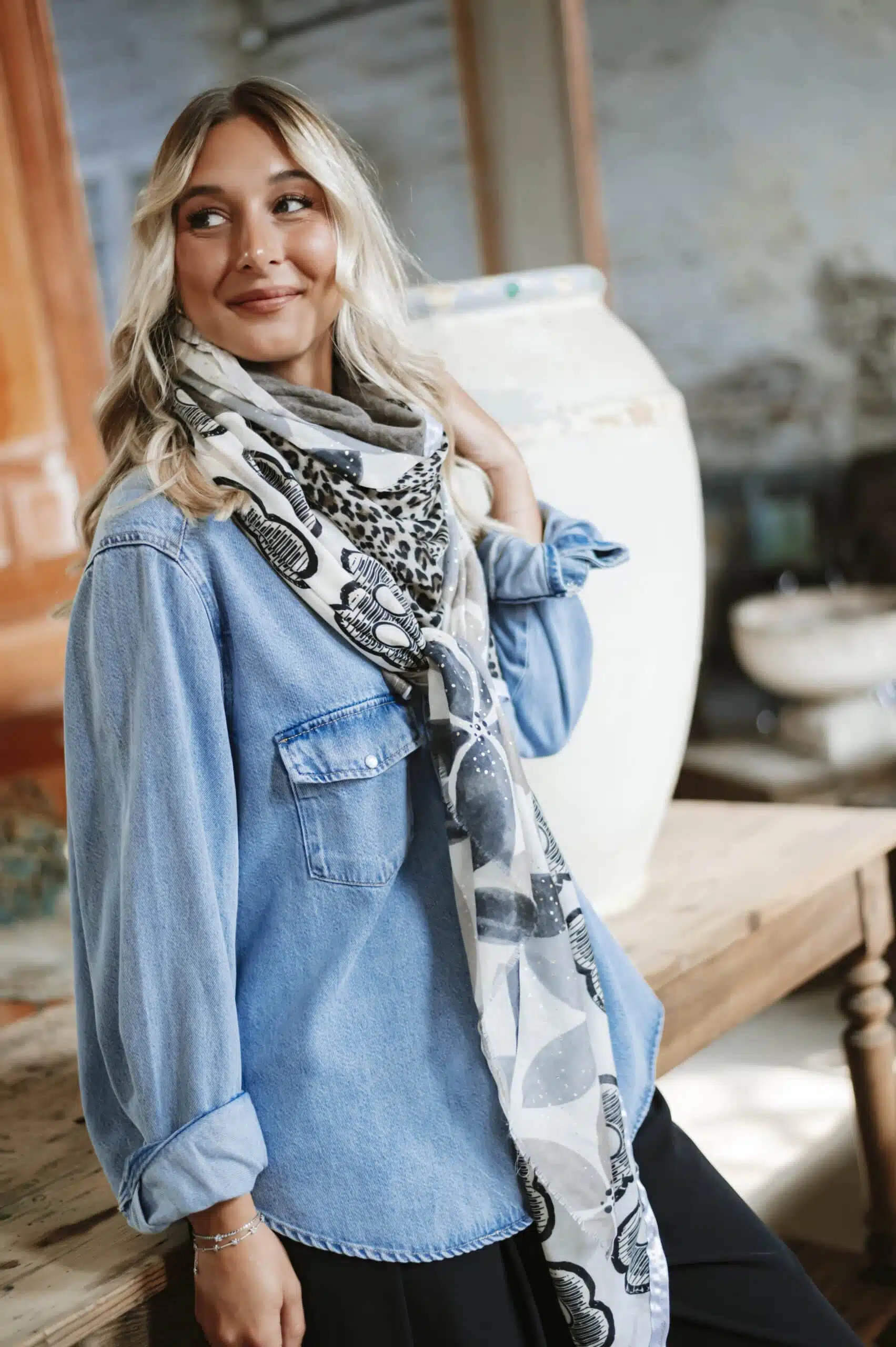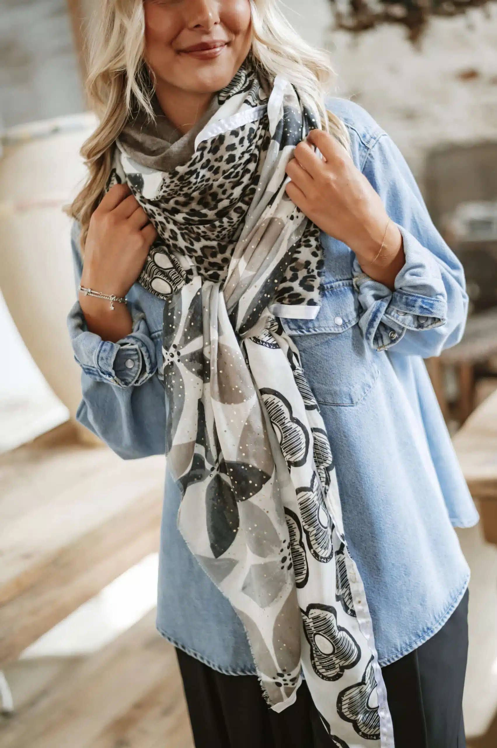 Le foulard Shanna est un assemblage de 4 morceaux de tissus différents, agrémenté de rubans décoratifs et assortis. Le carré Shanna Automne/hiver 2025 est moelleux, et agréable à porter. Il vous accompagnera en début de saison pour apporter couleurs et luminosité à vos tenues et il vous tiendra chaud les soirées d’hiver.