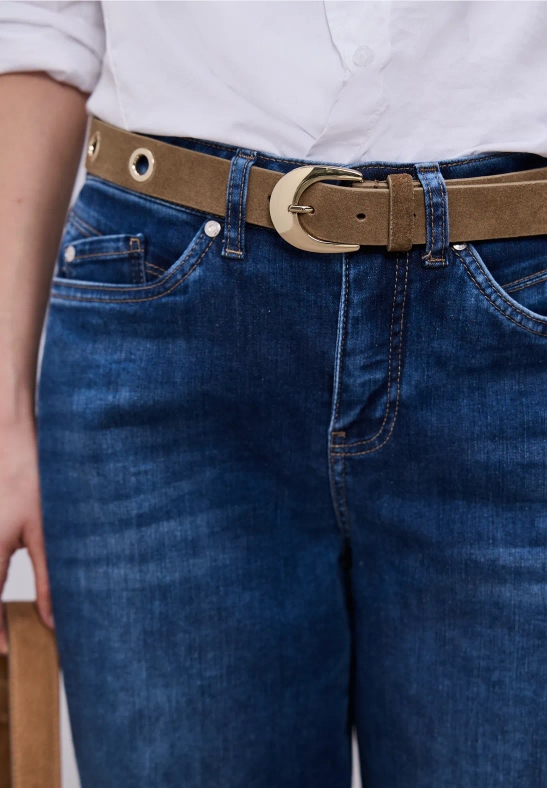 La ceinture à rivets de Street One pour femmes apporte une touche d’originalité. Le cuir assure un confort de port agréable. La boucle arrondie complète harmonieusement le look. Idéale pour les tenues décontractées modernes.