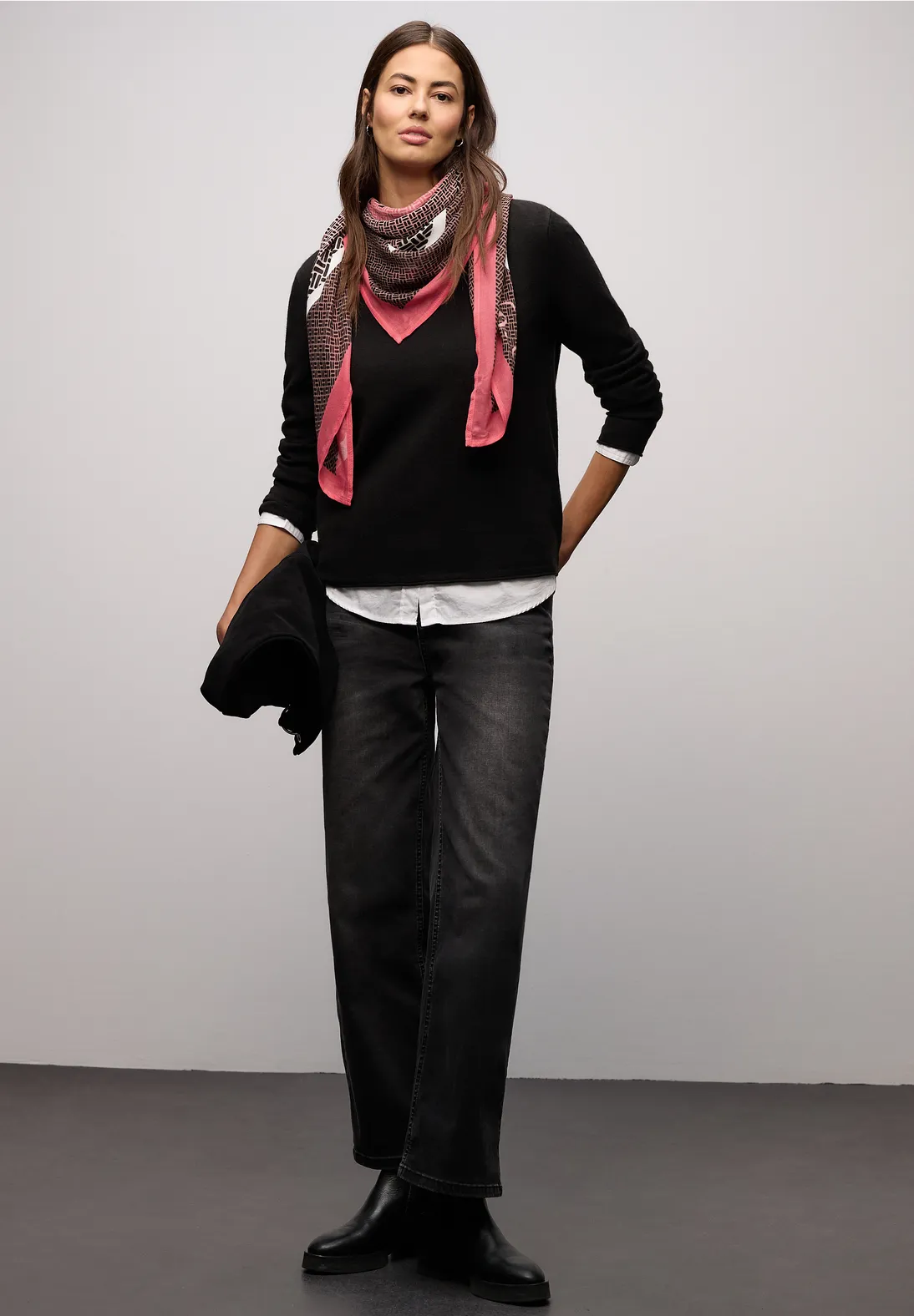 Ce foulard carré de Street One pour femmes se distingue par son design graphique remarquable. La qualité modale douce assure un confort agréable. Il peut être porté de différentes manières – noué de manière classique ou de manière décontractée. Idéal pour ajouter une touche de couleur à ta tenue.