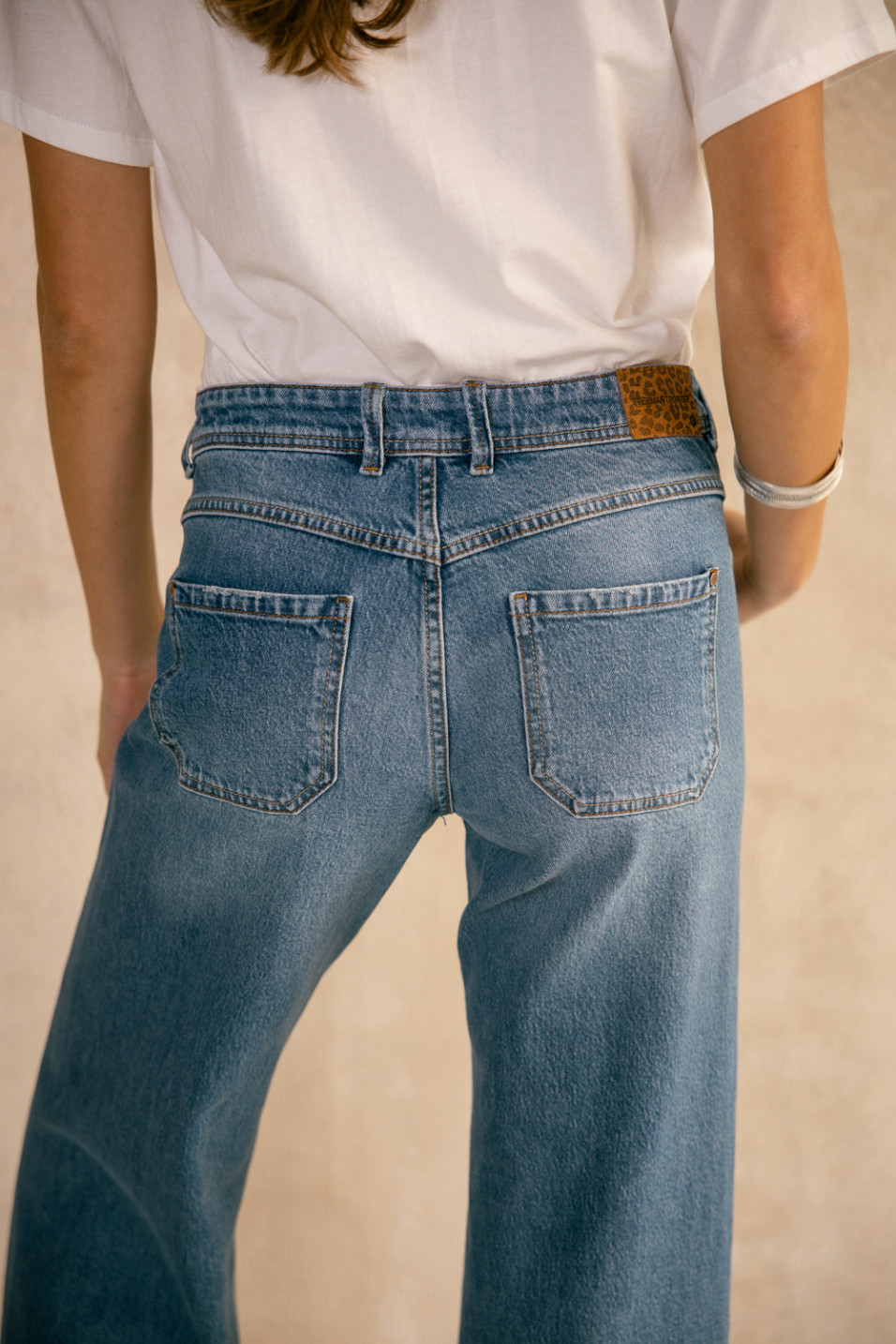 • Coupe flare (ressérré aux genoux, large en bas)