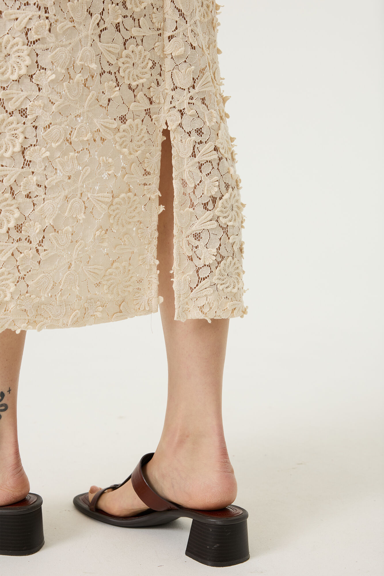 Jupe midi avec des détails brodés et une élégante finition en dentelle.