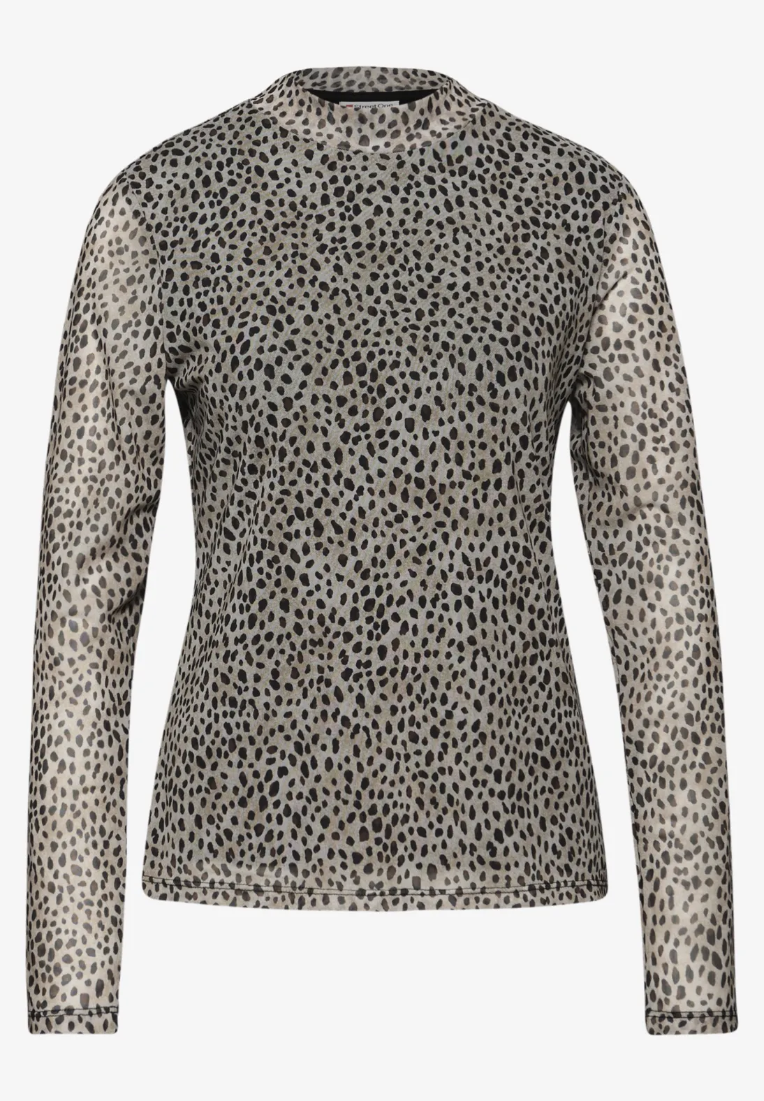 Le t-shirt en maille de Street One pour femmes séduit par son motif léopard tendance et sa qualité de maille transparente. Un sous-shirt intégré assure l’opacité et un agréable confort. Le turtleneck complète parfaitement le look superposé à la mode.
