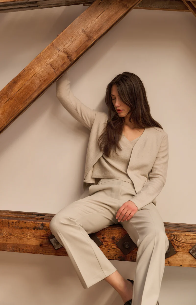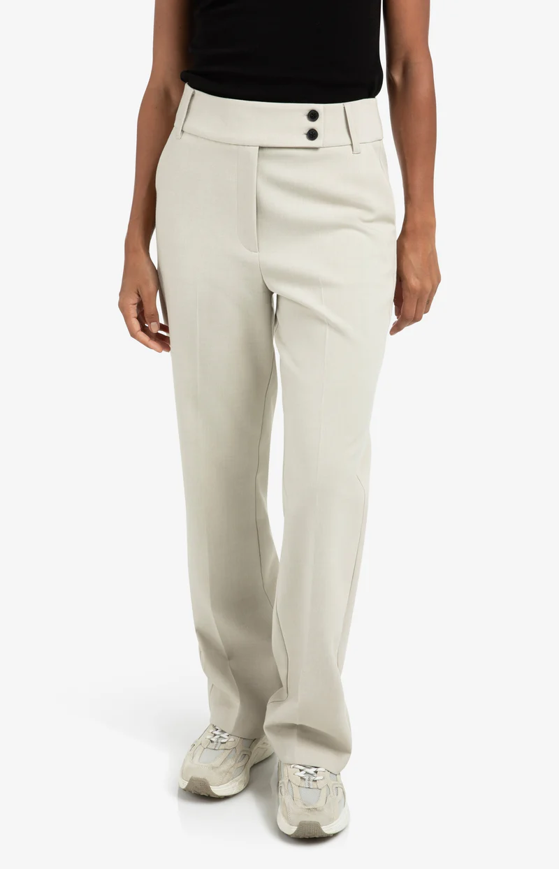 Ce pantalon élégant est fabriqué à partir d’un tissu léger et présente une coupe droite avec une ceinture élégante à double bouton. La taille haute et les plis pressés créent une silhouette flatteuse. Conçu avec des poches latérales et une poche arrière boutonnée pour plus de finitions. Parfait pour un look soigné, décontracté ou prêt pour le bureau.