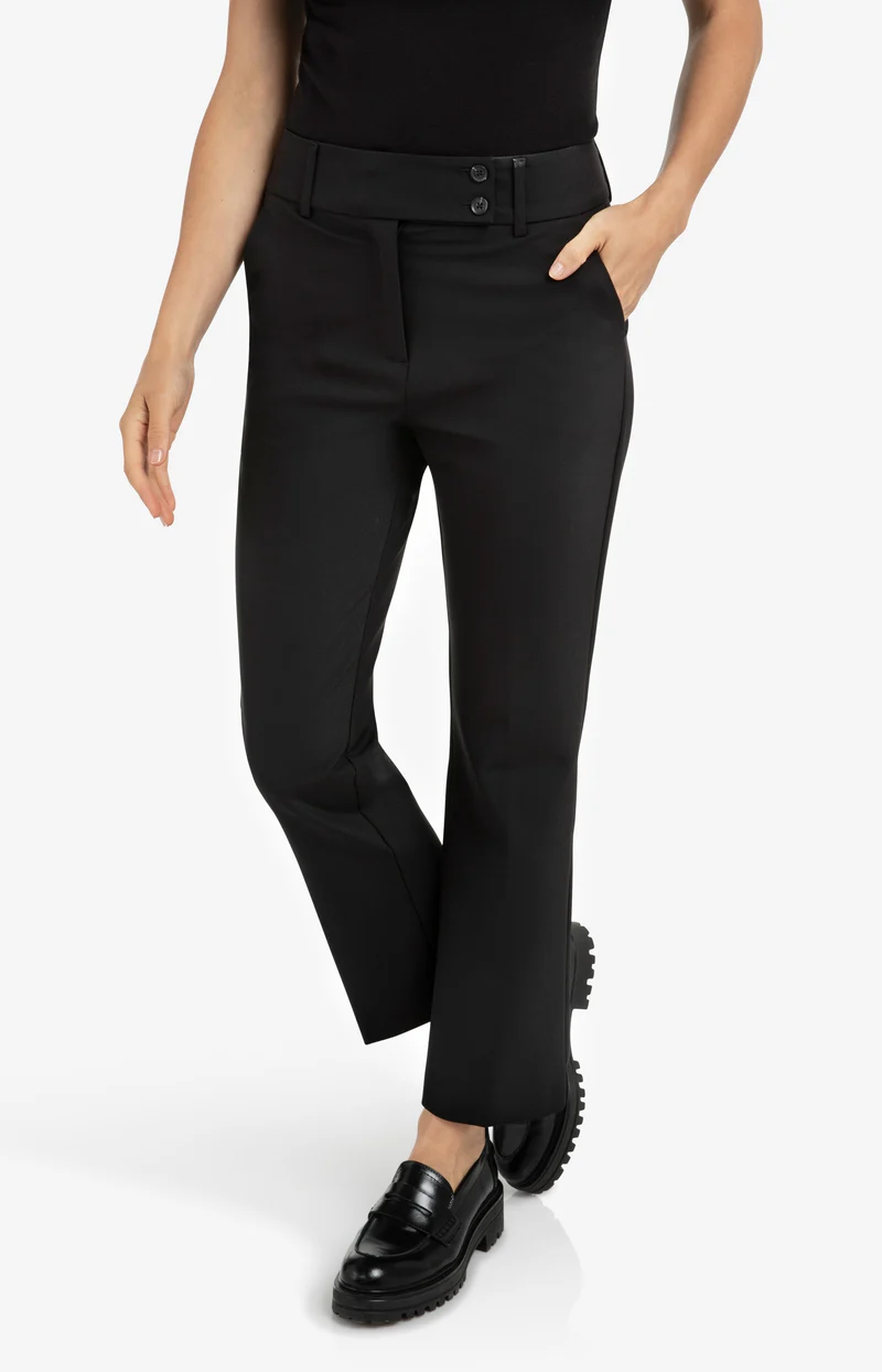 Ce pantalon est confectionné en jersey de néoprène avec une finition lisse et présente une coupe à jambe droite. La ceinture large et moderne, dotée d’un bouton, apporte une touche de raffinement. Conçu avec des poches latérales et une poche passepoilée à l’arrière. Le tissu élastique offre à la fois confort et forme. Une pièce polyvalente que vous pouvez combiner à l’infini.