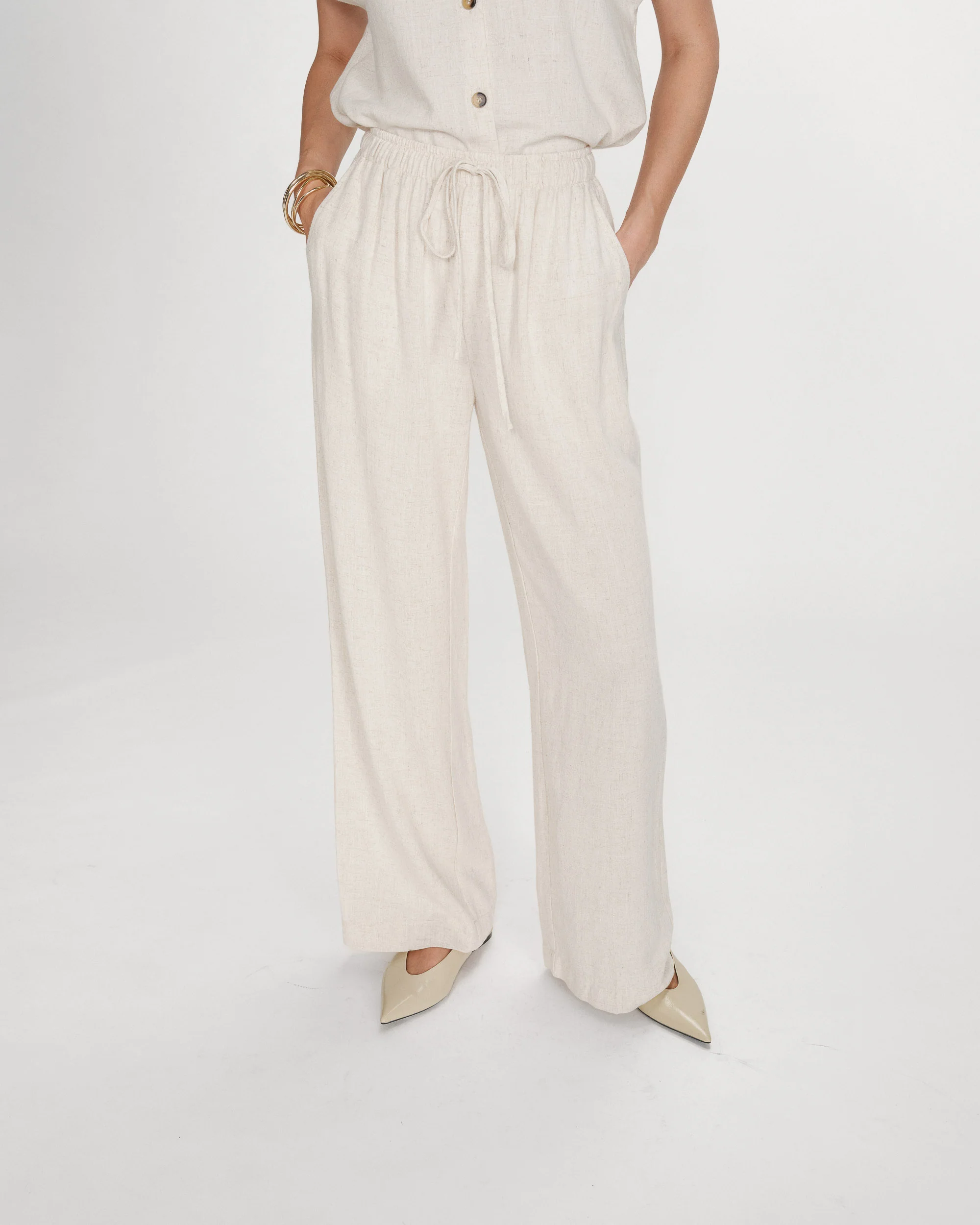 Pantalon large taille élastiquée en lin mélangé