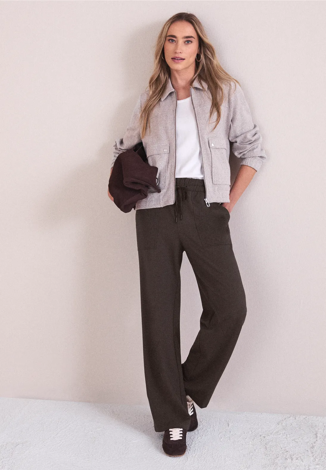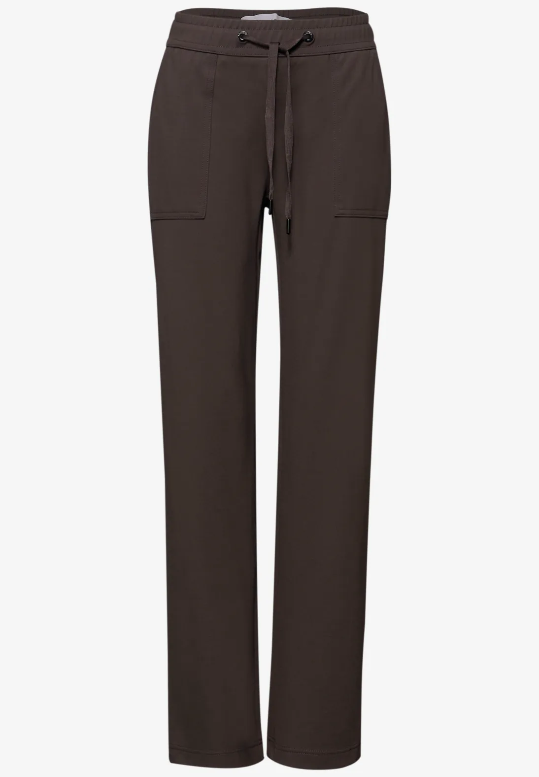 Ce pantalon Punto di Roma de Street One pour femmes est un classique élégant avec une taille haute et des jambes droites. La taille élastique avec cordon de serrage assure un ajustement confortable, tandis que le mélange de viscose avec une part de stretch offre un port doux et confortable. En couleur unie et avec des poches latérales, il devient un allrounder pratique au quotidien.
