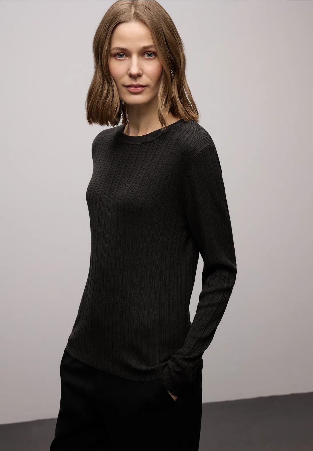Le pull-over en maille fine de Street One pour femmes marque des points avec sa structure finement côtelée et son mélange noble de viscose et de coton. L’encolure ronde assure une silhouette classique. La qualité agréable est particulièrement légère et douce au toucher. Idéal pour des looks quotidiens soignés à l’élégance discrète.
