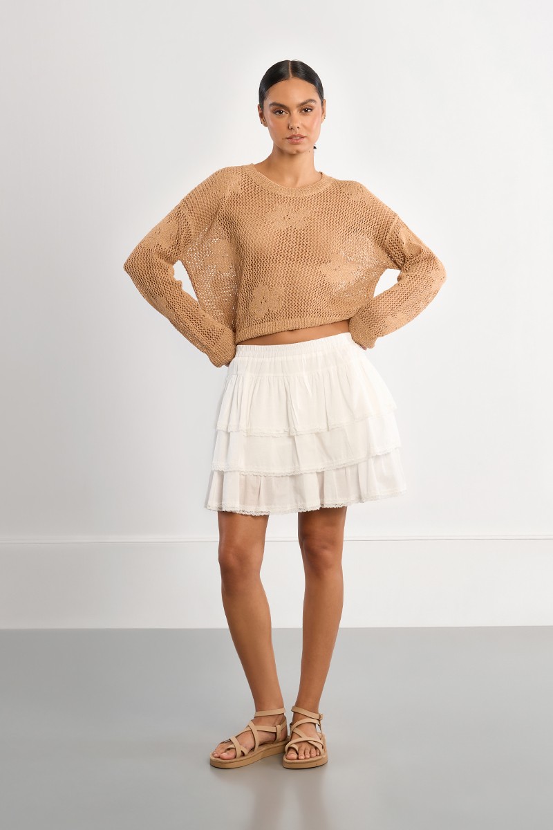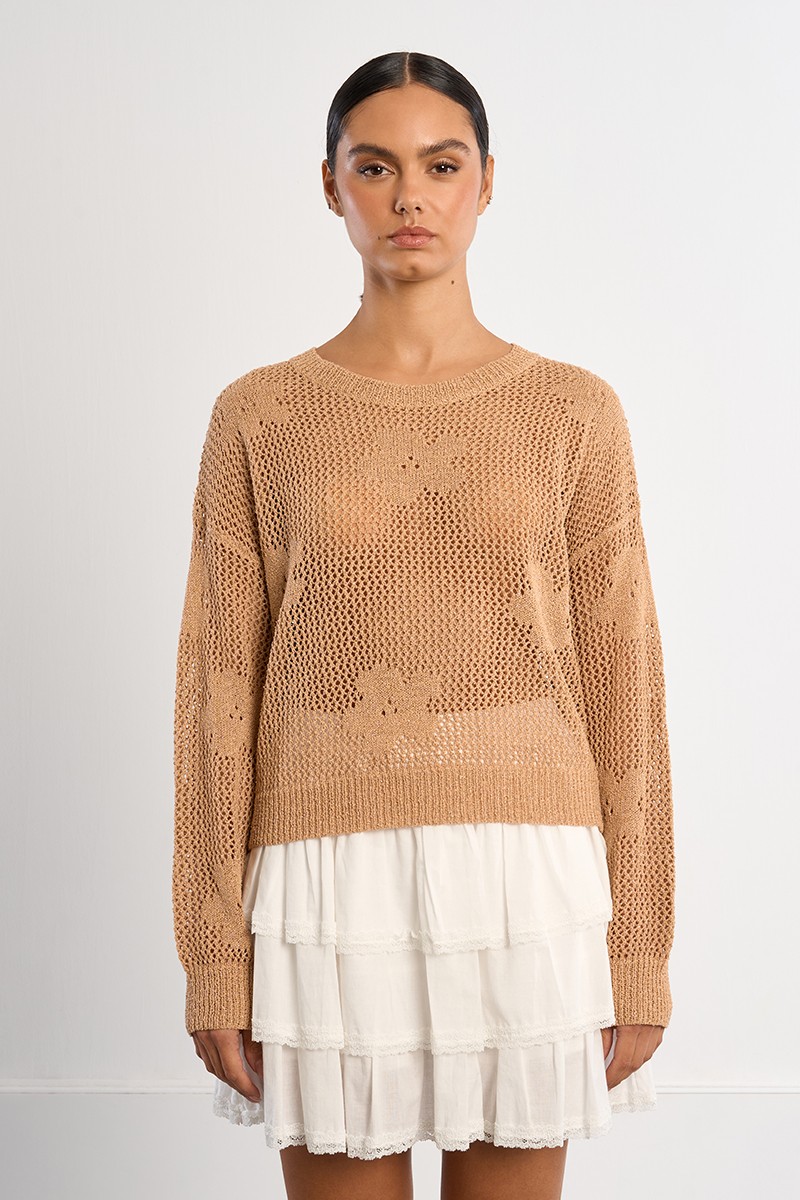 -Pull en maille fine avec détails fleurs -Manches longues -Col rond -Semi-transparence
