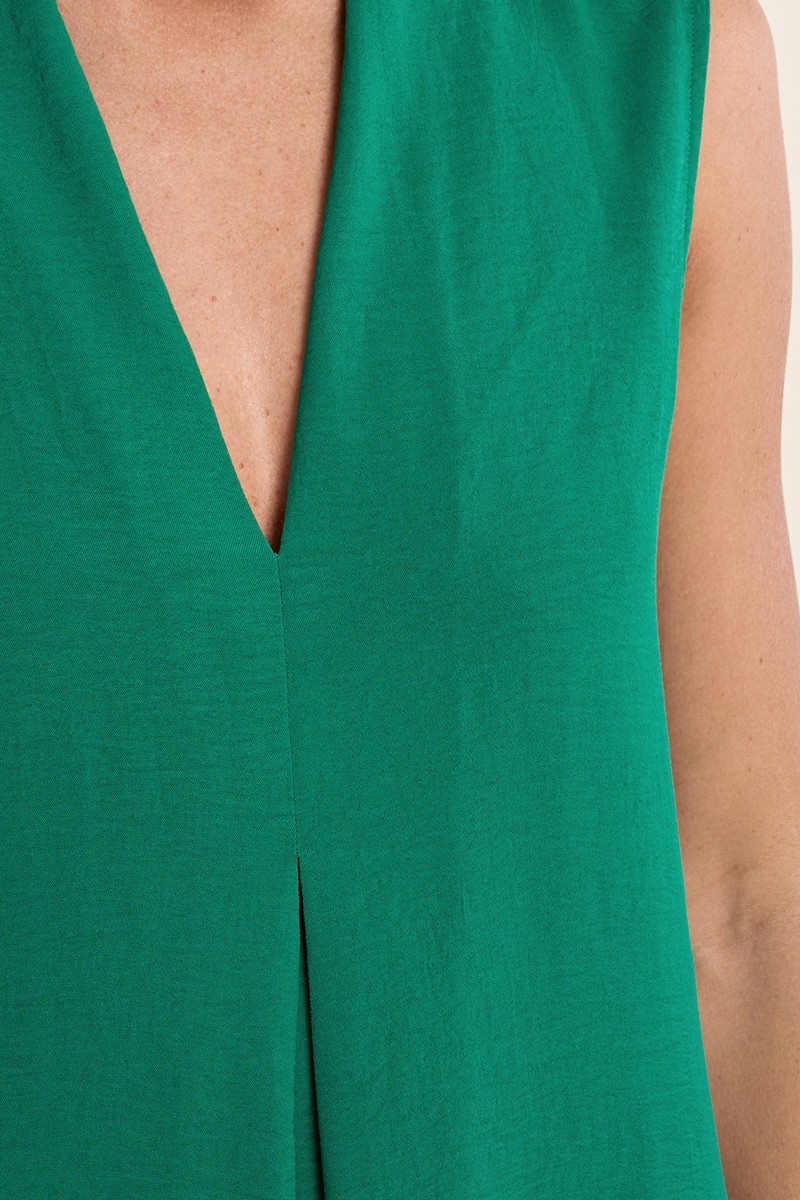 -Robe longue trapèze -Sans manches -Col V -Fluide