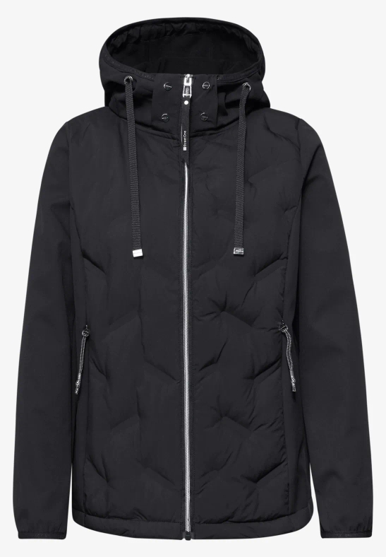 La veste de transition à structure mixte de Street One pour femmes combine un tissu softshell sportif avec des détails piqués à la mode pour un look décontracté. La capuche avec cordon de serrage ainsi que les poches latérales avec fermeture éclair complètent le caractère casual et offrent des caractéristiques pratiques pour ton quotidien. Avec ses manches longues et sa fermeture éclair sur toute la longueur, tu es parfaitement armé – stylé et fonctionnel.