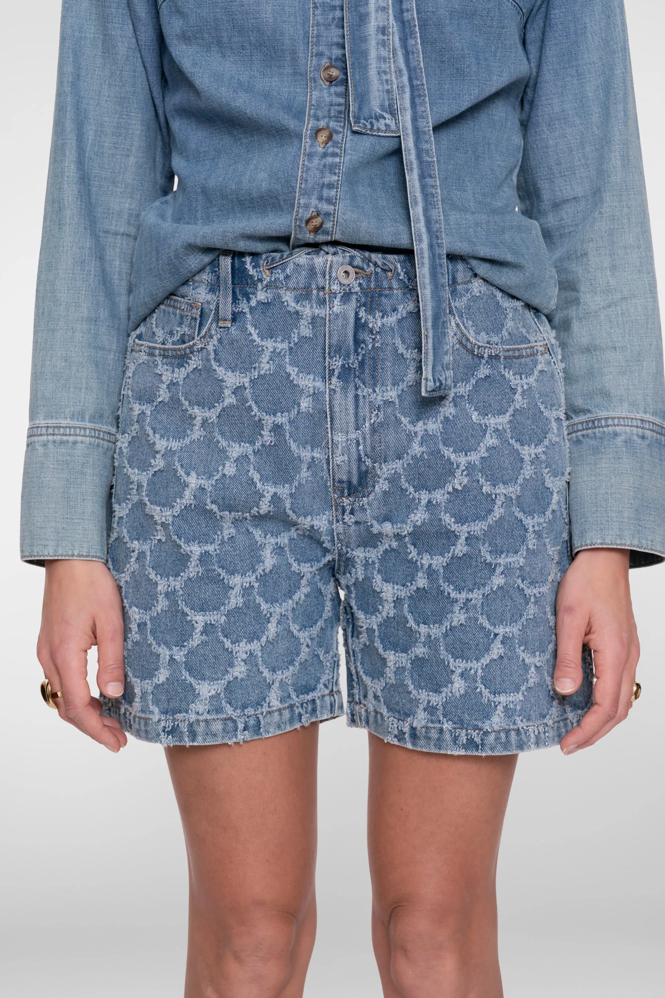 Ce short jacquard de notre collection combinent un look en denim distinctif avec une coupe confortable. La structure jacquard subtile donne au short un aspect raffiné, tandis que la ceinture élastique avec cordon apporte un confort supplémentaire. Un objet polyvalent qui peut être porté séparément et dans l’ensemble coordonné.