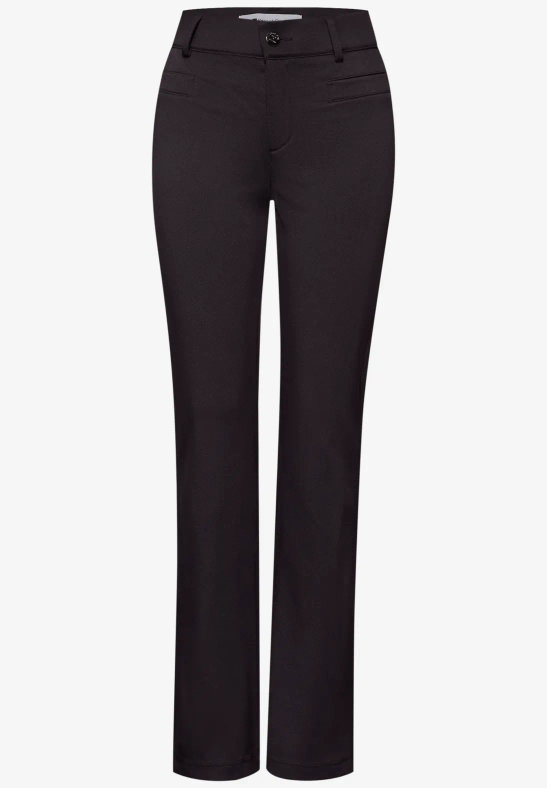 Le pantalon Bootcut de Street One pour femmes dans le style York combine une silhouette féminine avec un grand confort. Le Slim Fit, la High Waist et les jambes évasées forment une ligne élégante. Le mélange de matières stretch assure une tenue agréable – idéal pour les looks polyvalents de bureau ou de loisirs.
