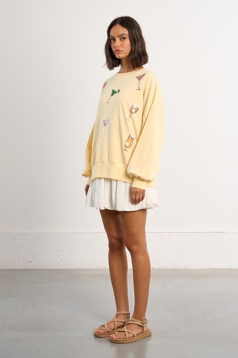 Sweat jaune broderies en seqins