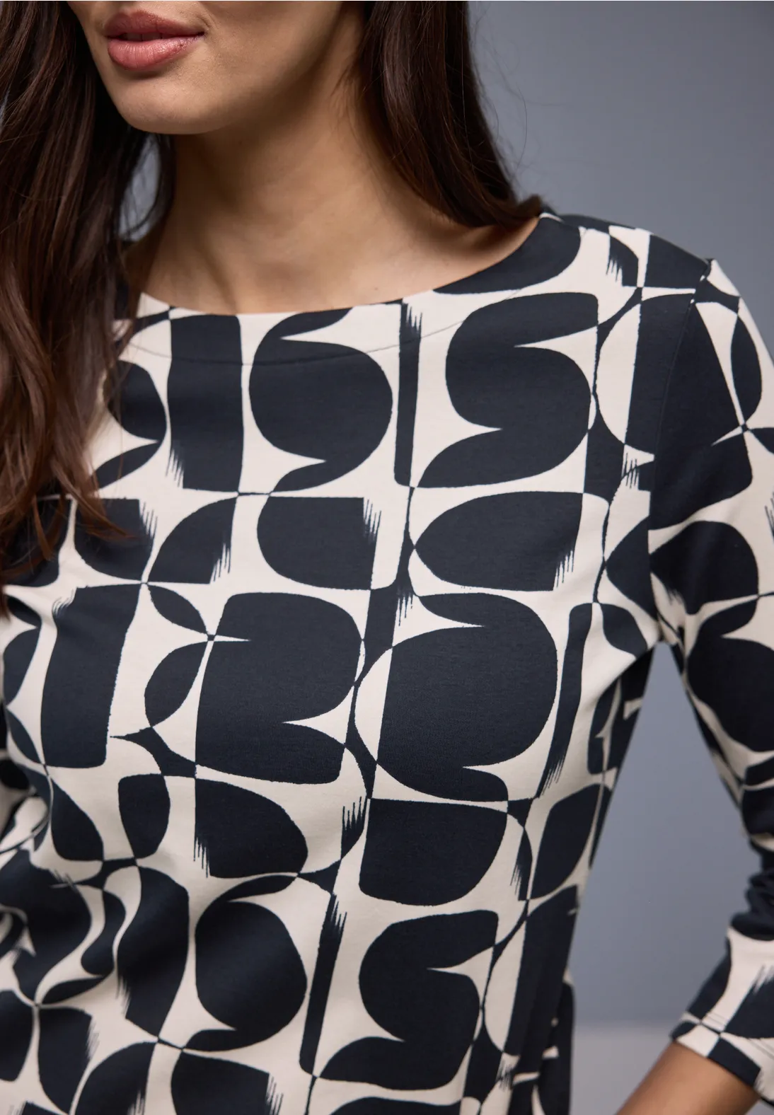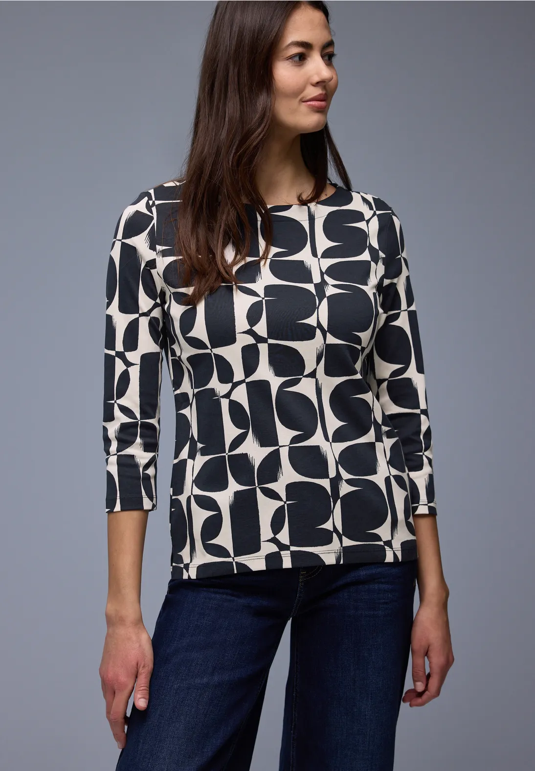 Le t-shirt en coton à motifs de Street One pour femmes avec encolure U-Boot et manches 3/4 convainc par son motif graphique et son grand confort. Le pur coton est agréable sur la peau et facile à porter. Un look décontracté pour des tenues casual variées.