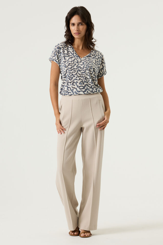 T-shirt avec un imprimé intégral frappant. Ce T-shirt a un col en V, des manches courtes et une coupe régulière.