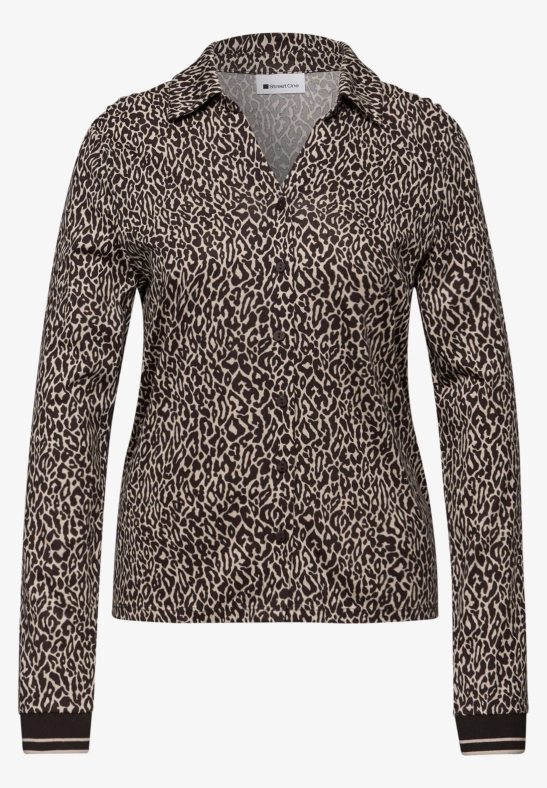 Ce t-shirt léopard de Street One pour femmes apporte une touche de blouse à ton look quotidien. Le col chemise, la patte de boutonnage et les poignets collège assurent un mélange tendance de classique et de sportif. Le doux mélange coton-modal est agréable à porter – un vrai coup de cœur pour des styles individuels.
