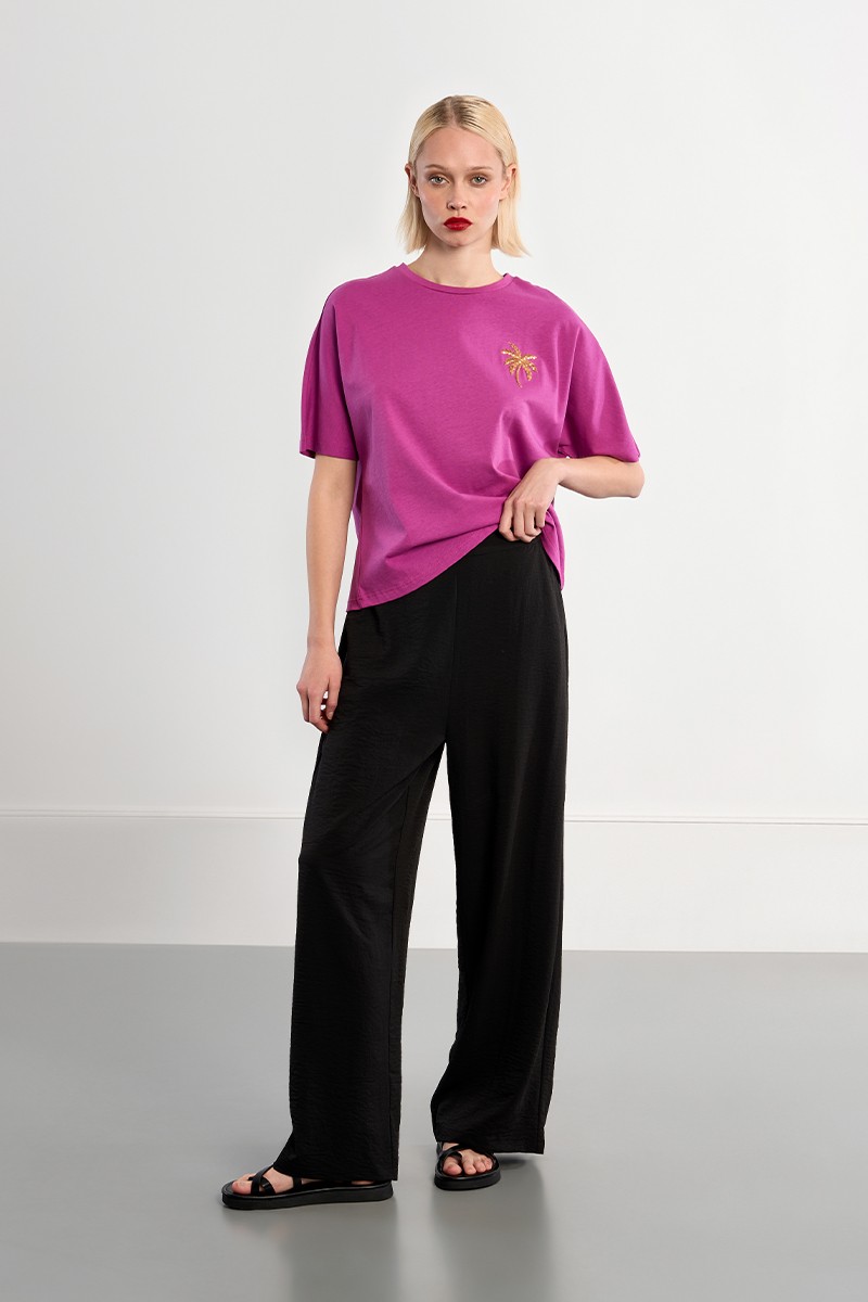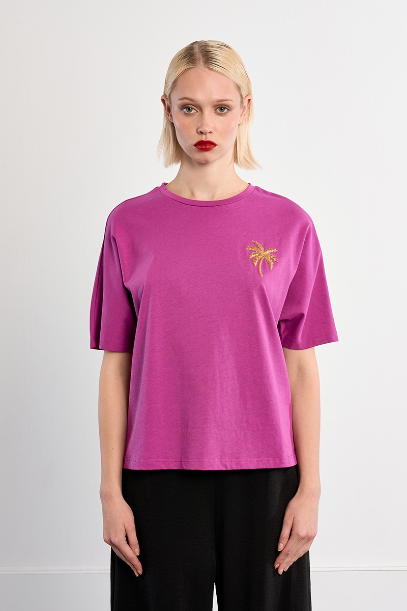 -T-shirt oversize palmier -Manches courtes -Col rond -Coupe oversize -Palmier sequin
