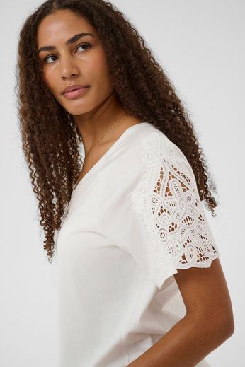 Manches courtes avec des détails de broderie sur le bas de celles-ci.